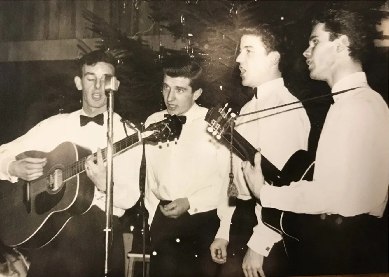 As the son of a Methodist Minister I had been brought up with a strong sense of responsibility and an expectation to find solutions to awkward human situations like this. And, as can be seen in the picture, in in my undergraduate days in the 1960s I had sung in a “Beatles” band – although at that point yet to learn the guitar. Compelled by my upbringing, I pushed back my chair, walked to the band and asked to borrow a guitar. Somewhat surprised they agreed and I started singing a song that I could remember from Wye days called “It’s a lesson too late for the learning”. You can hear Tom Paxton singing it here.